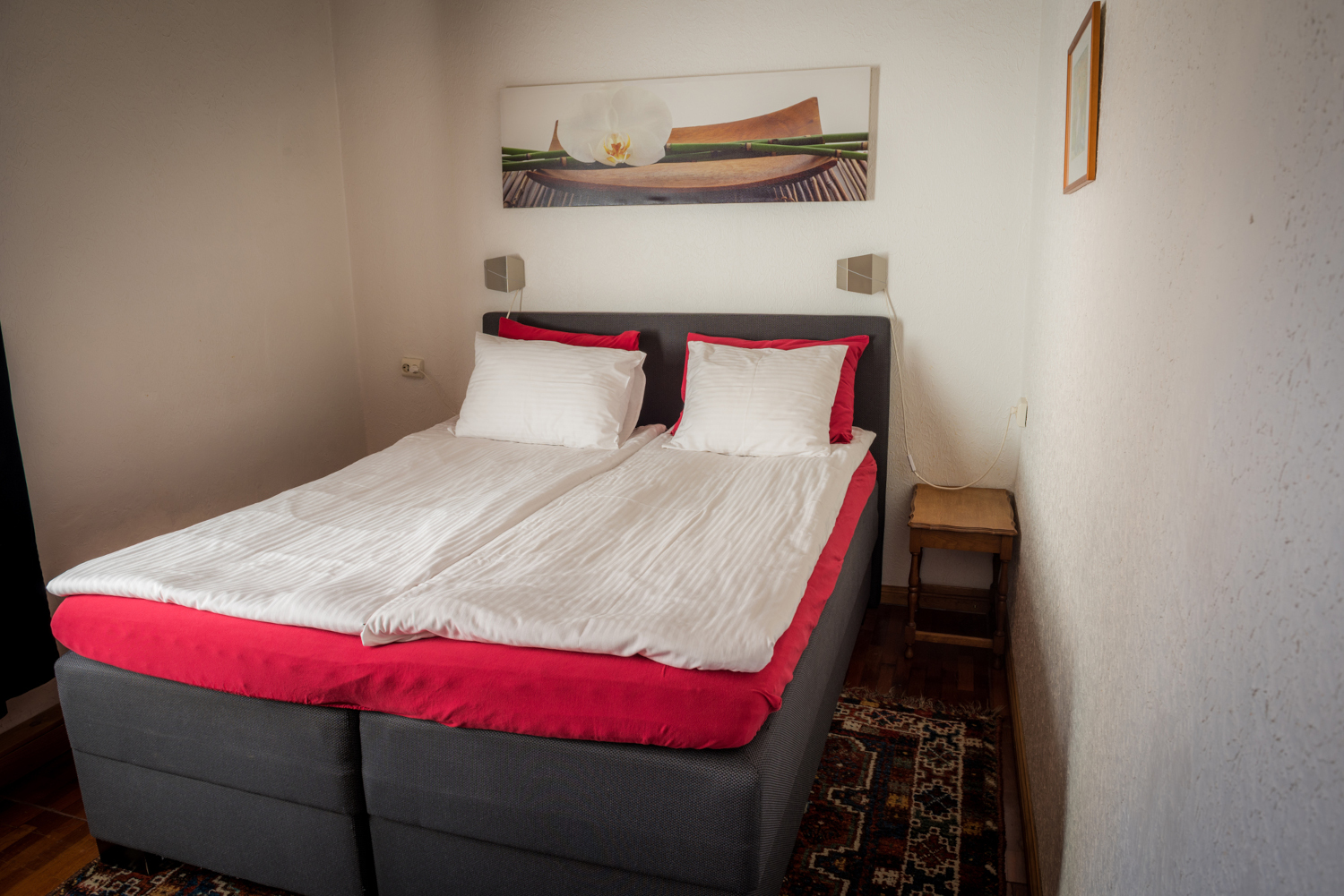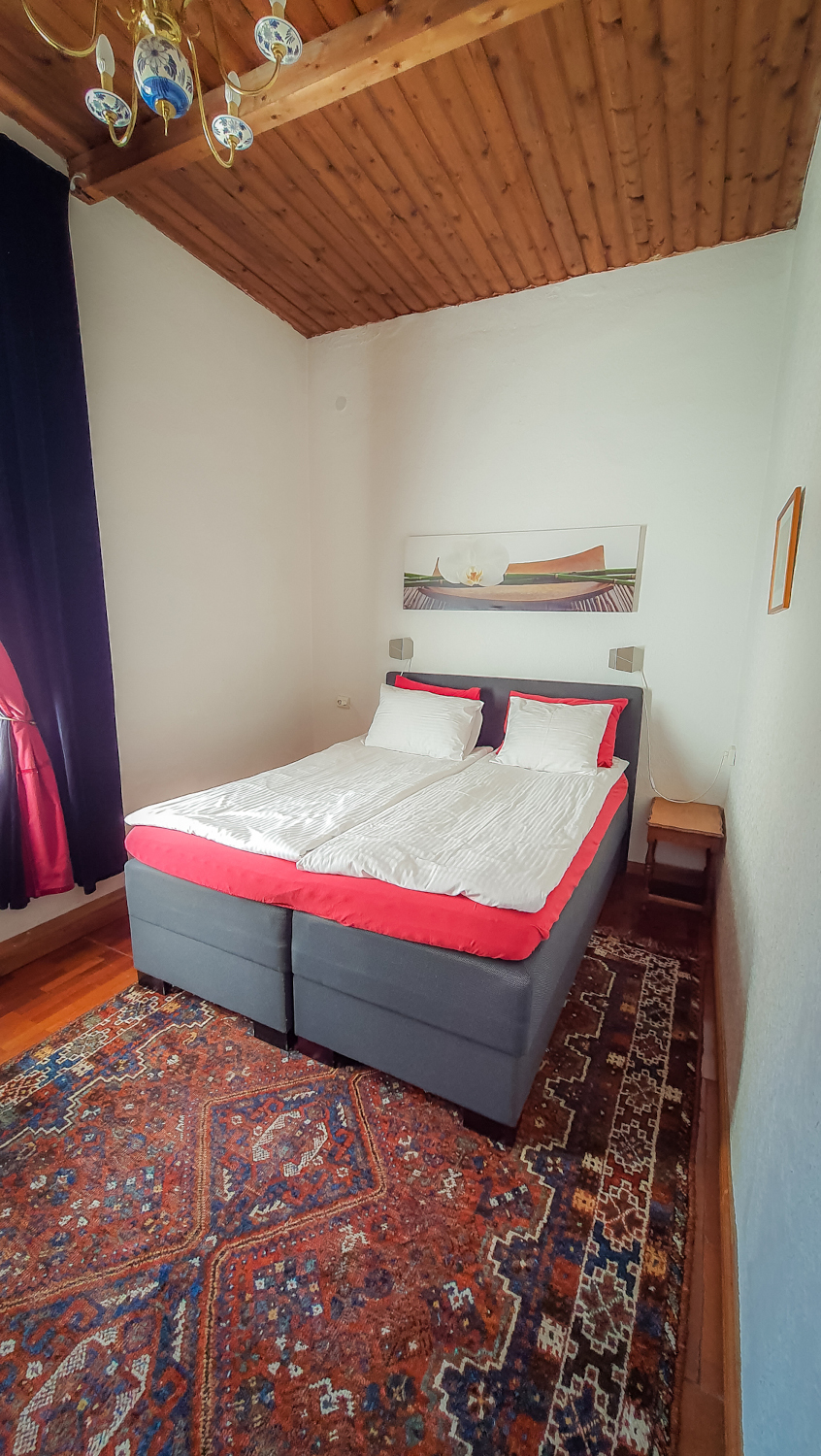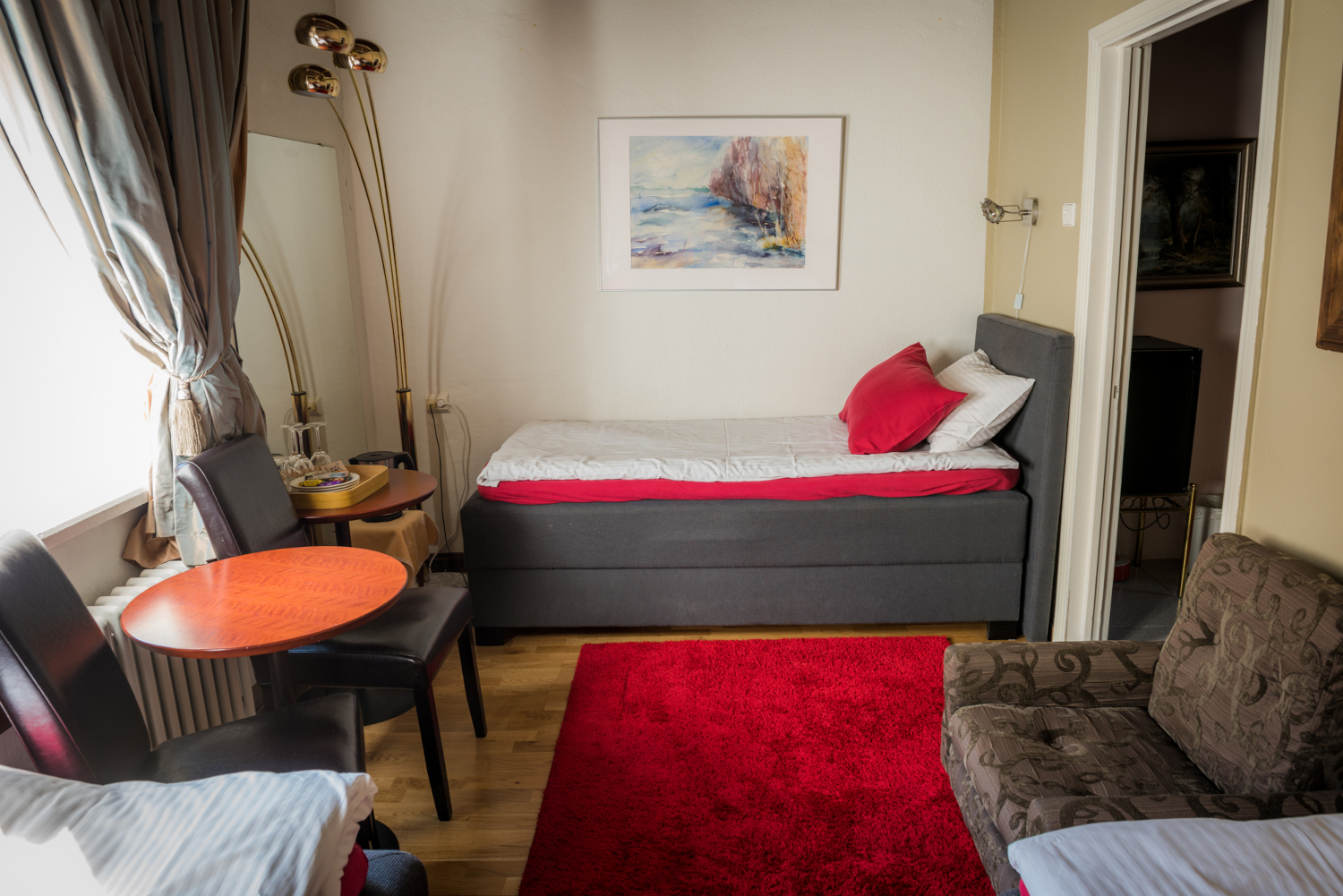 Perhehuone sisältää kaksi erillistä huonetta joissa on omat lukot. Huoneet jakavat yhden kylpyhuoneen.Toisessa huoneessa parisänky minkä saa myös erikseen. Toisessa huoneessa 130cm leveä vuode. Huone mukavuudet: Pöytä, Tuoli, Sänky / Sängyt, WC, Suihku, Vedenkeitin, Kahvi ja Tee. Huoneen hintaan sisältyy aamiainen.