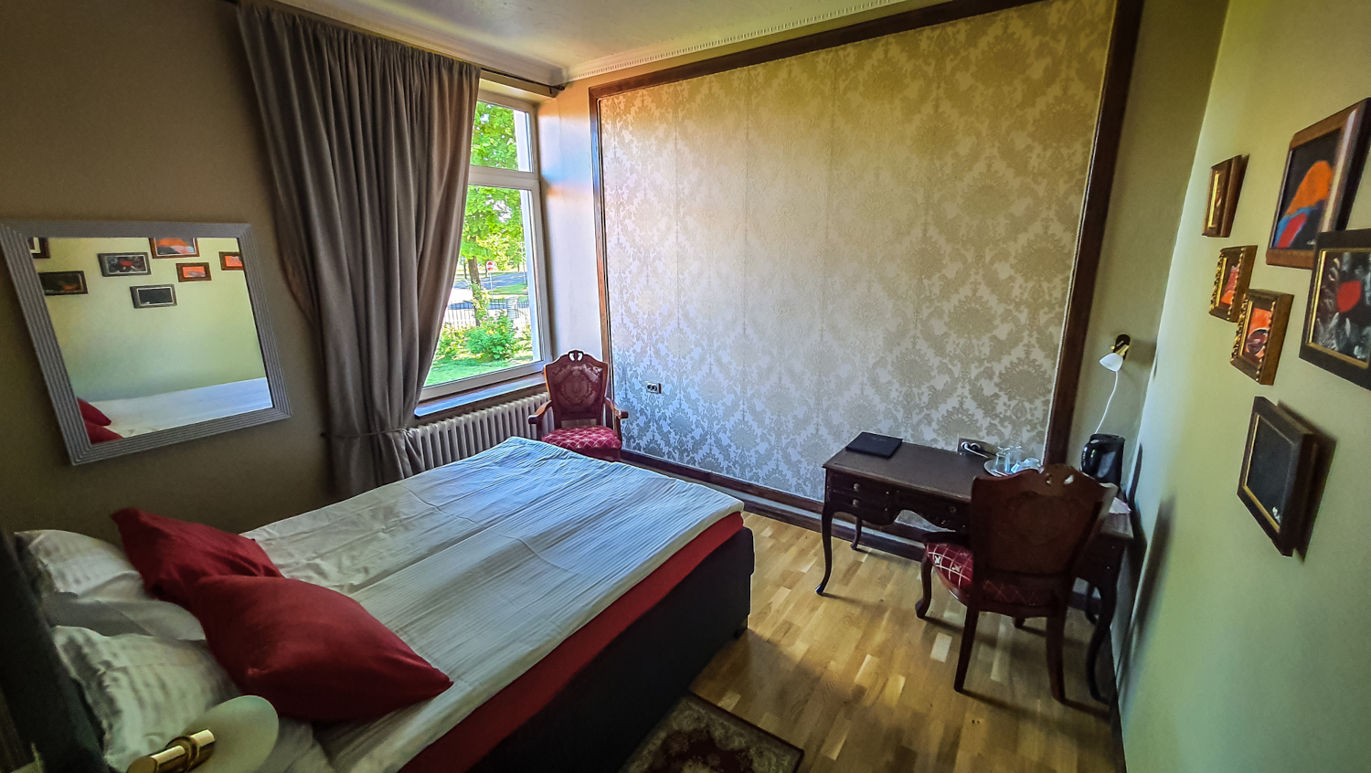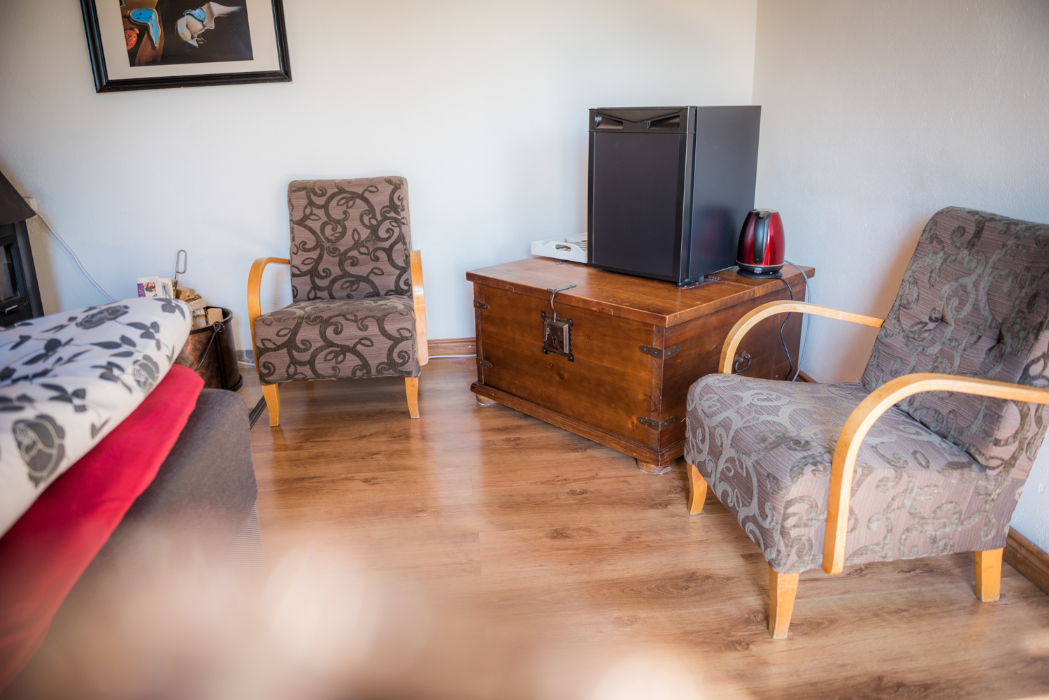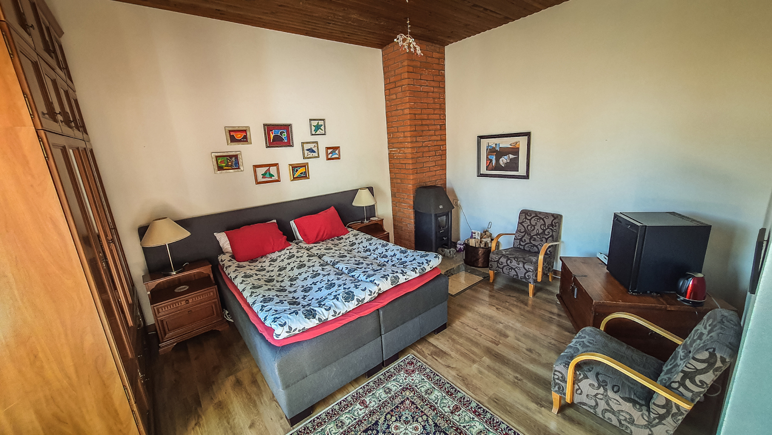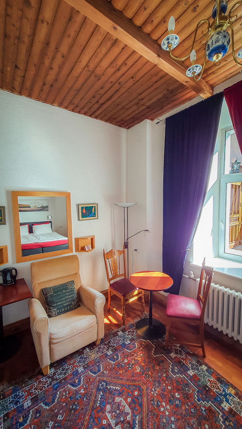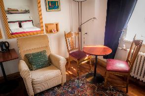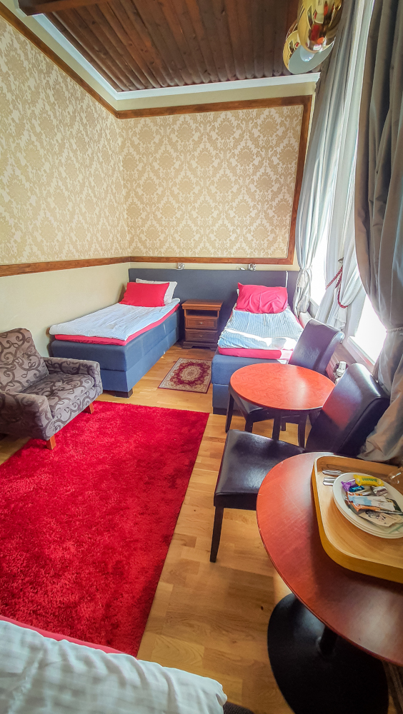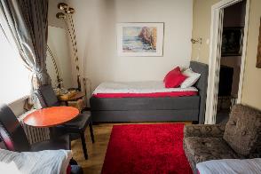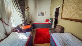 Tilavassa sviitissä on takka Huone mukavuudet: Puutakka, Sohva, Parkettilattia, Pöytä, Tuoli, Sänky / Sängyt, WC, Suihku, Vedenkeitin, Kahvi ja Tee. Huoneen hintaan sisältyy aamiainen. Pieni jääkaappi. Vuoteet: Parisänky ja kaksi yhden hengen vuodetta.